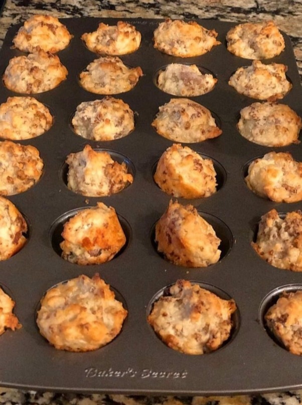 - Mix Ingredients: In a large bowl, combine sausage, cream cheese, Bisquick, hash browns, and cheddar cheese until well blended.