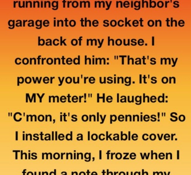 It started with an extension lead running from my neighbour’s garage into a socket on the outside of my house. Shock gave way to anger. I marched over and confronted him. “That’s my power you’re taking,” I said. He laughed it off—“C’mon, it’s only pennies!”—but I felt violated. The next day I installed a lockable cover over the outlet.
