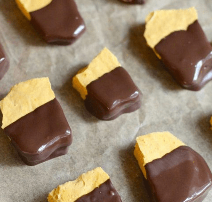 Fairy Food is light, airy, and crisp, with a deep toffee or caramel flavor—almost like honeycomb candy, but richer. While the candy itself is delicious, most traditional versions dip it in chocolate, a step that truly completes the experience and should absolutely not be skipped.