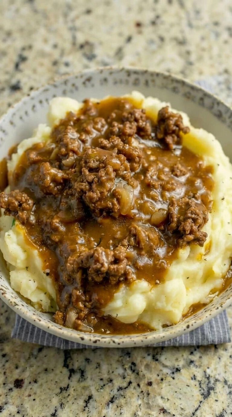 This Classic Mashed Potatoes with Ground Beef Gravy is the definition of comfort food. Creamy, buttery mashed potatoes topped with a rich, savory beef gravy make this dish hearty, filling, and deeply satisfying. It’s simple, affordable, and made with everyday ingredients, making it perfect for busy weeknights, cozy weekends, or whenever you need a comforting homemade meal that feels like a warm hug.