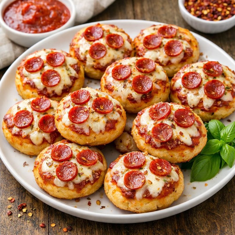 - Add Toppings: Spread a small spoonful of sugar-free pizza sauce on each base. Top with shredded cheese and 4–6 pepperoni slices. Sprinkle Italian seasoning or red pepper flakes if desired.
