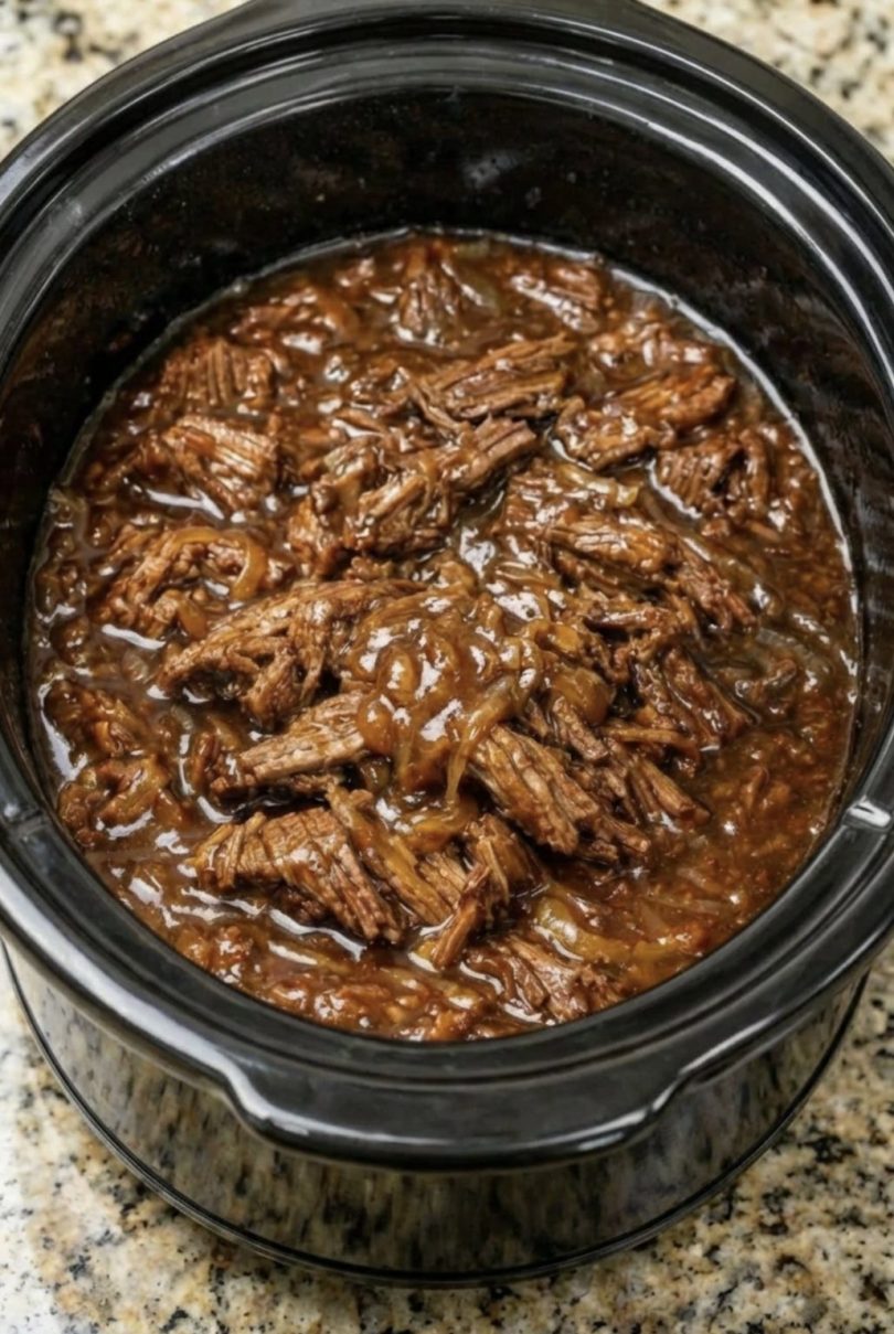 - Cover and cook on low for 7–8 hours (or high for 4–5 hours) until meat is tender and shreds easily.