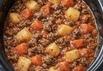 This slow cooker 3-ingredient sausage cheese dip is exactly what I pull out when I need a guaranteed crowd pleaser and have zero extra brain space. It’s the kind of dip my brother will hover over and eat straight from the slow cooker—he once polished off half the pot before the guests even made it to the front door. The magic is in how simple it is: just browned sausage, a brick of melty cheese, and a can of tomatoes with green chilies. It all melts together into a rich, creamy, slightly spicy dip that feels like game day, movie night, and casual get-togethers at home in the Midwest all rolled into one.
