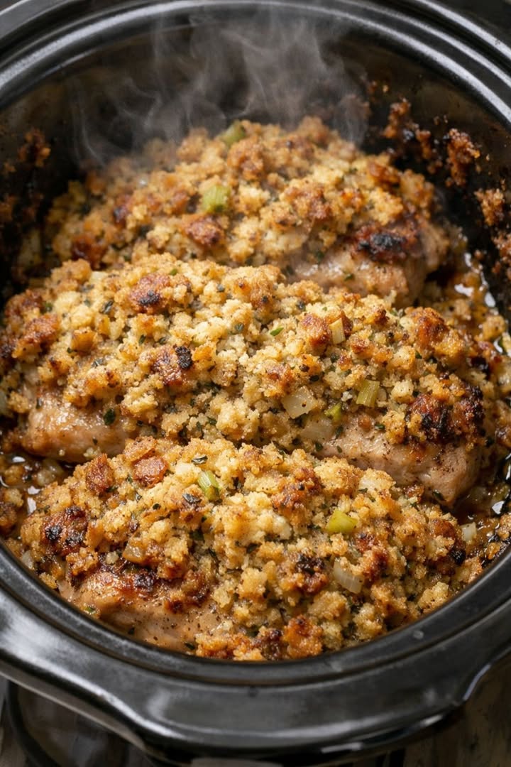 Slow Cooker 3-Ingredient Amish Stuffing Pork Chops
