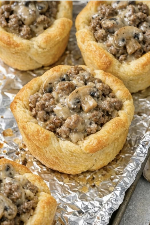 There is a certain kind of recipe that makes you look like a culinary genius with very little evidence of the effort it actually took. These Beef and Mushroom Crescent Cups are exactly that. Golden, buttery crescent dough baked into individual pastry shells, packed with a rich, creamy filling of seasoned ground beef, earthy mushrooms, and melted cheese — and ready in under 40 minutes from start to finish.