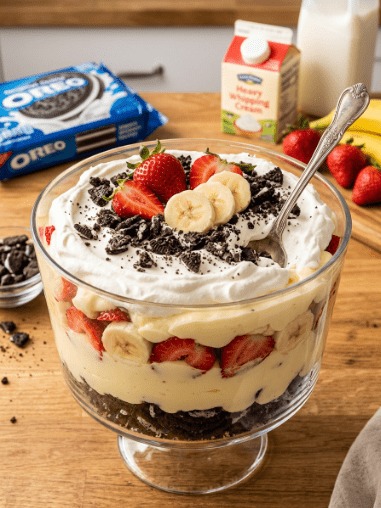 - Use a clear dish. The layers of cream, fruit, cookies, and Cool Whip are genuinely beautiful, and a clear trifle bowl or glass casserole dish lets everyone see exactly what they are about to eat. It transforms a simple assembled dessert into something that looks intentionally designed and impressive.