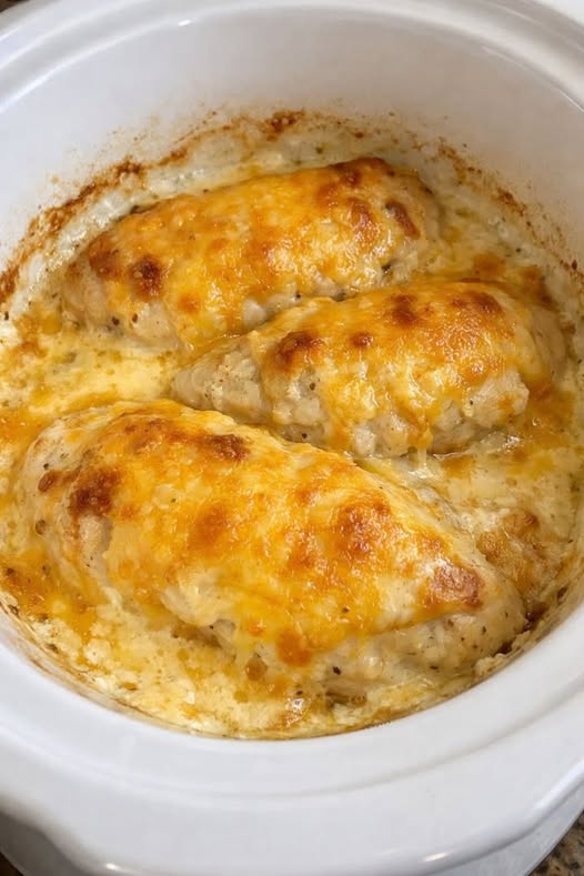 The Ultimate Slow Cooker 4-Ingredient Cheddar Baked Chicken